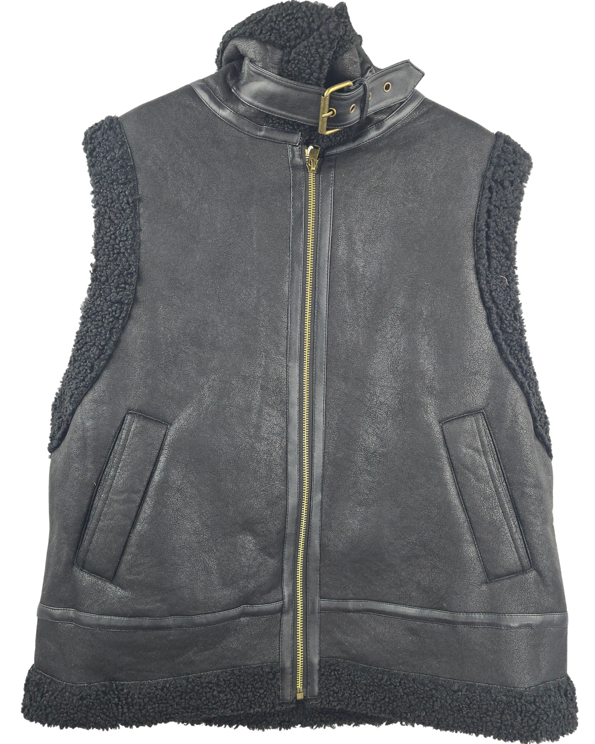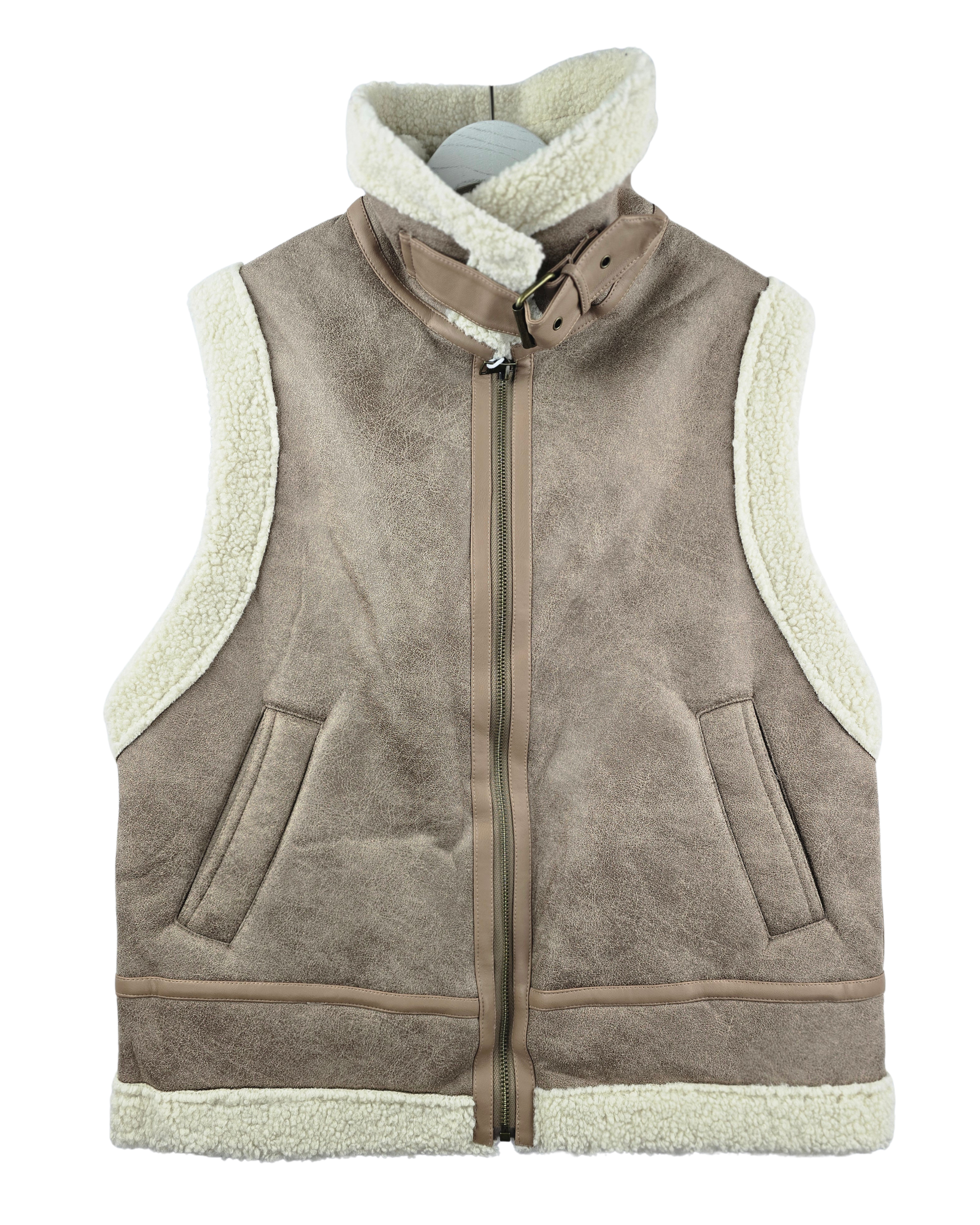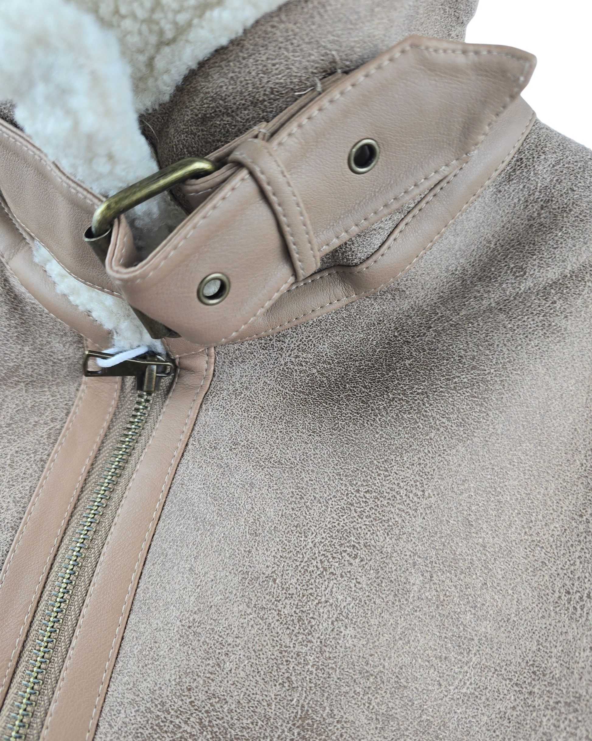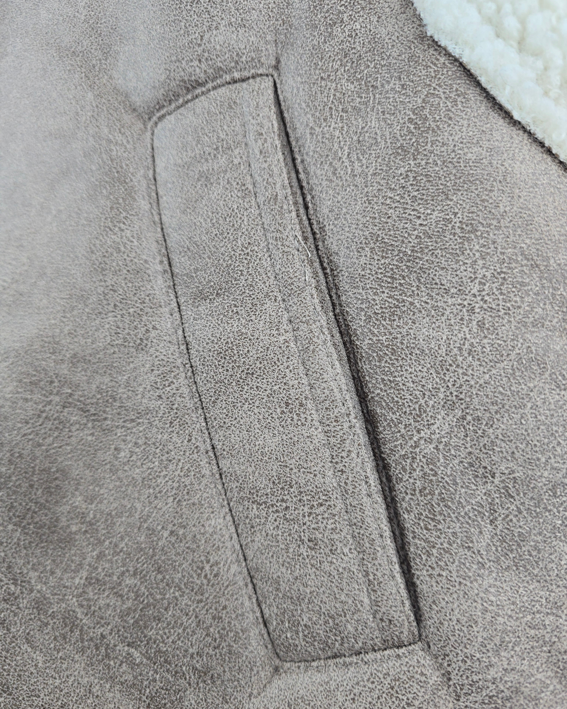 Este chalequillo de borreguito antelina representa la elegancia en su forma más refinada. Su corte sin mangas permite una versatilidad excepcional, mientras que el herraje y la hebilla en el cuello añaden un toque de sofisticación y control del ajuste. El bolsillo integrado combina practicidad con estética depurada. Una prenda de transición que eleva cualquier conjunto con su textura suave y detalles de calidad superior.